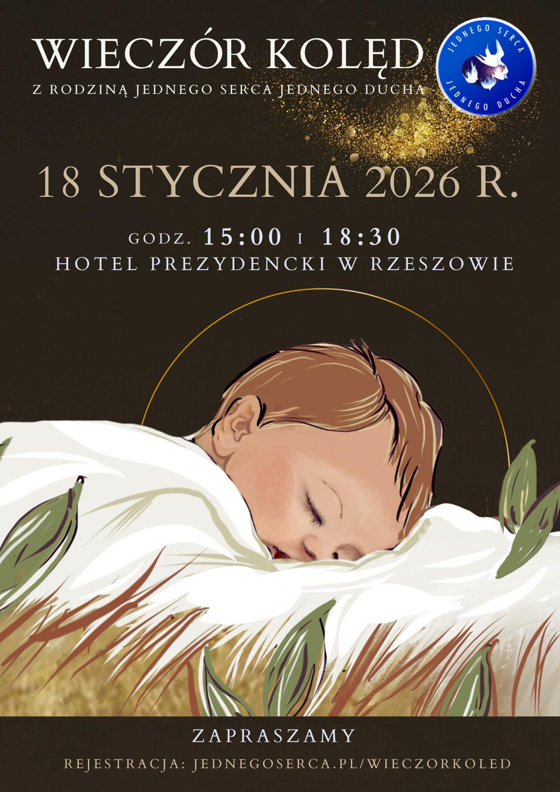 Chór i Orkiestra Jednego Serca Jednego Ducha zaprasza na wspólne kolędowanie 18 stycznia 2026 r. w Hotelu Prezydenckim w Rzeszowie, ul. Podwisłocze 48 (dojazd od ul. Kopisto).